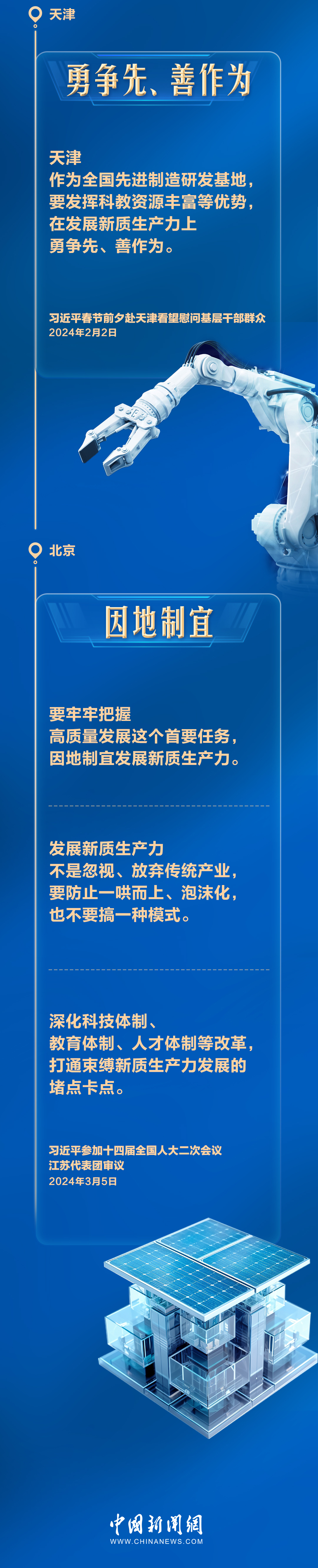 3月5日,中共中央總書記、國家主席、中央軍委主席習近平在參加他所在的十四屆全國人大二次會議江蘇代表團審議時再次提到“新質生產力”。