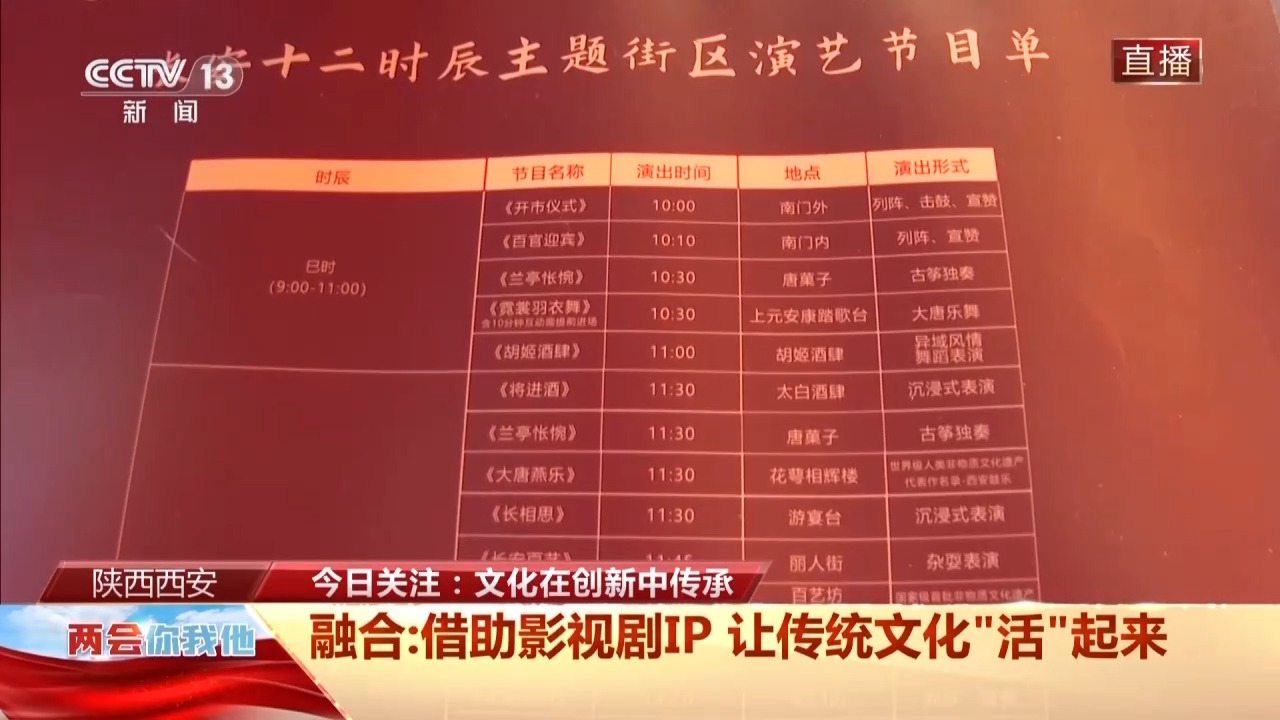 除了道具,這樣的一個主題街區(qū),小型互動表演遍布,這個節(jié)目單從早上10時的開市儀式一直到晚上10時的互動演繹,全天有70多場演出,旺季最多的時候有上百場演出。很多都是互動式的表演,比如太白酒肆里,李白的《將進酒》一出,總會出現現場齊誦的熱烈場面。這個春天,五湖四海游客齊誦唐詩的場景,已經成為西安的一道新風景。