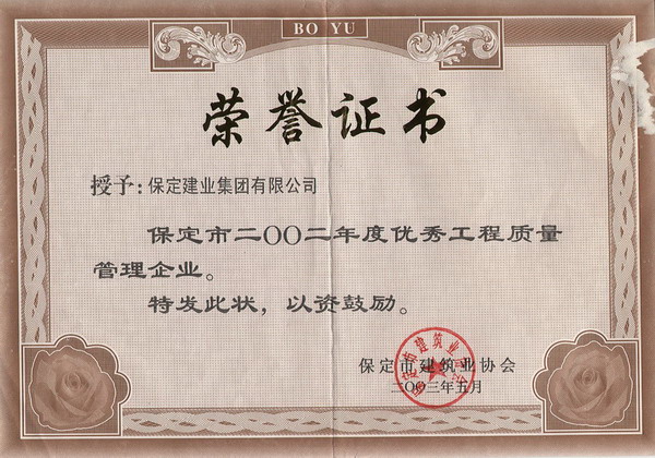 02年度省百?gòu)?qiáng)優(yōu)秀企業(yè)證書