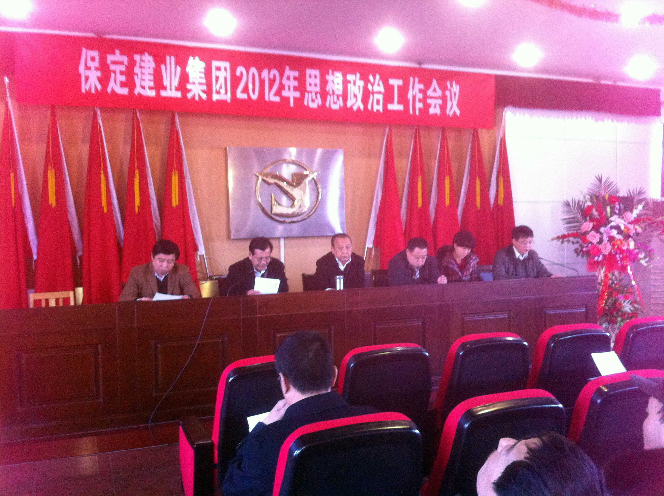 2012年3月14日,保定建業(yè)集團有限公司2012年思想政治工作會議在莊嚴(yán)的國歌聲中拉開了序幕,會議由黨委辦公室主任馬亞軍主持,集團各公司黨、政、工、團、婦、武裝、保衛(wèi)負(fù)責(zé)人參加會議。